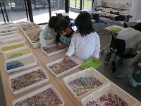 11月15日土曜日、中央公民館でプレイパークいわみ「モトフサ芸術教室~海と貝のティーライトを作ろう~」が開催されました。モトフサ現代美術館(岩美町牧谷)の岡野元房さんを講師に貝殻やビーズをグラスに貼り付けてクリスマスのキャンドルで使うティーライトを作りました。今年のクリスマスは、自分で作ったきれいでかわいいティーライトで楽しいクリスマスを迎えることでしょう。ティーライトを作った後、モトフサ現代美術館へ移動し、岡野元房さんの作品も鑑賞させていただきました。