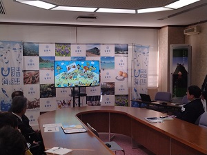 1月16日、岩美町役場で岩美町田後に伝わる民話「海の神様」をもとにしたアニメの完成報告会がありました。