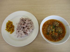 「レンズ豆と肉団子のトルコ風煮込み」と「古代米を混ぜたご飯」を作りました。